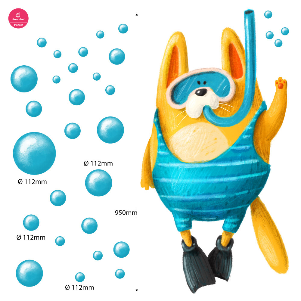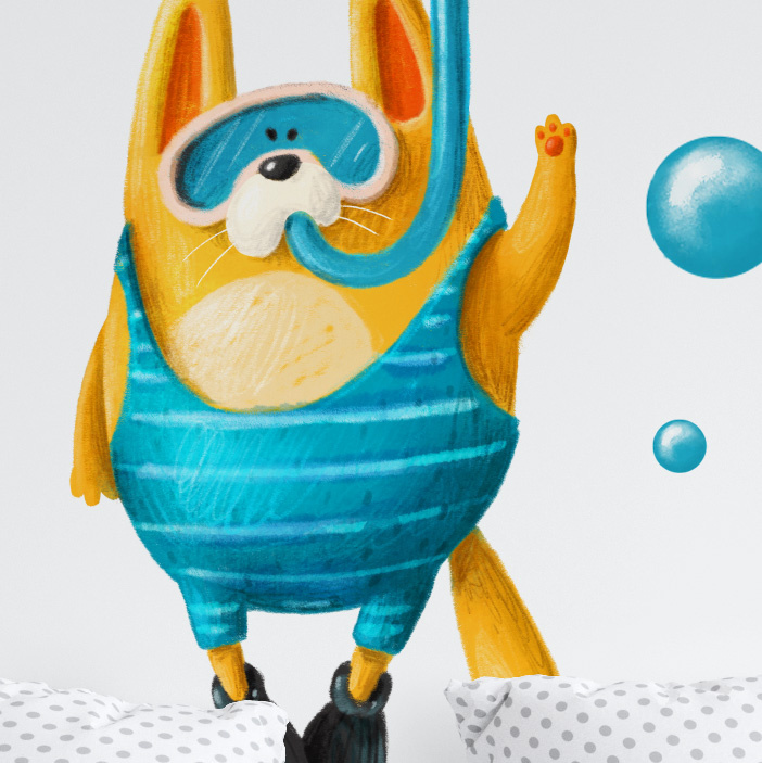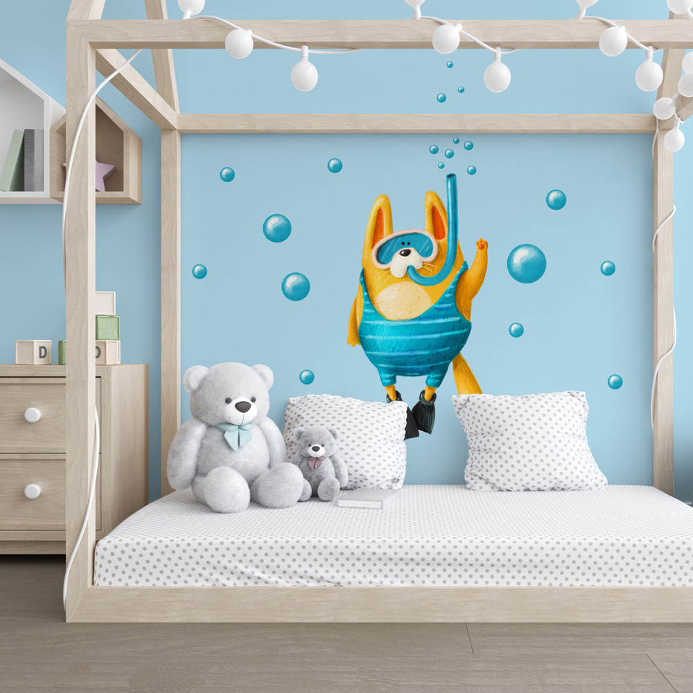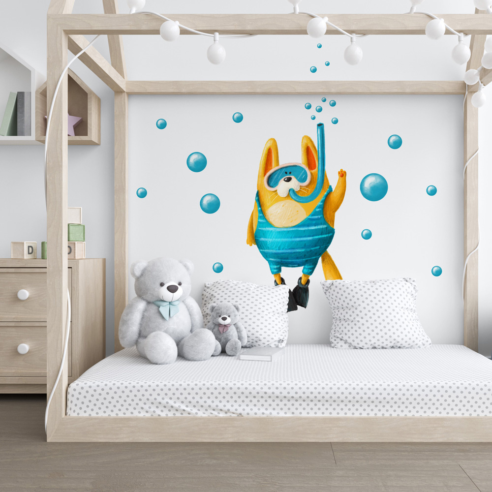 Samolepící textilní fólie kocourka pod vodou vhodná pro dětský pokoj.