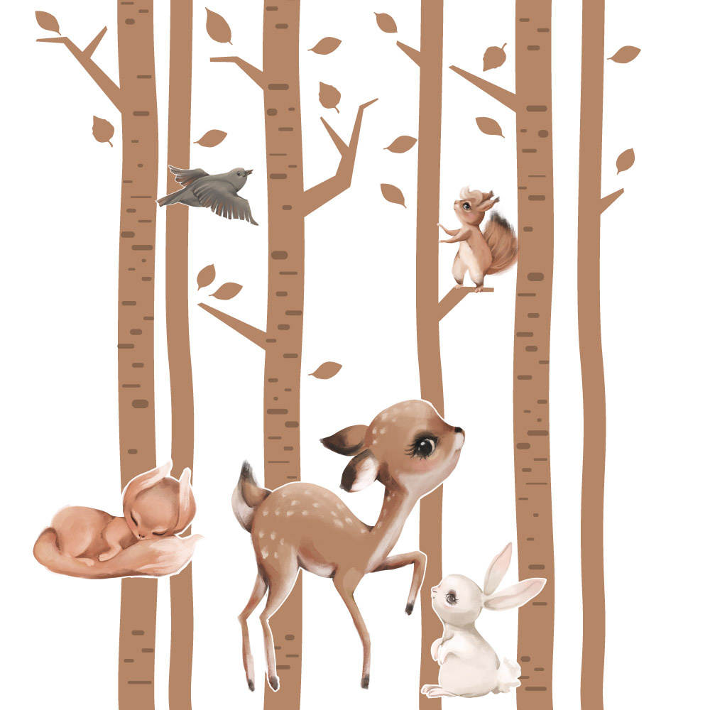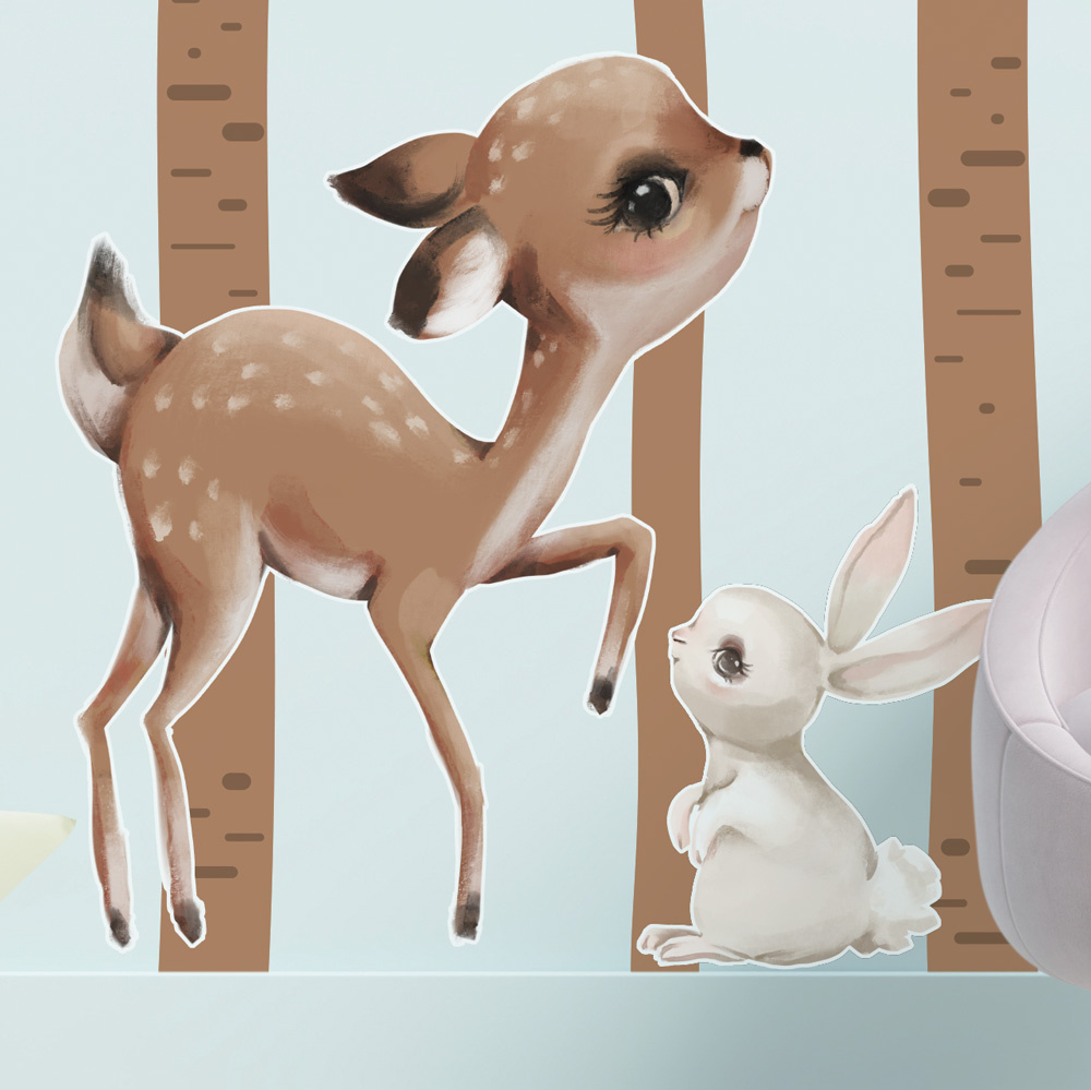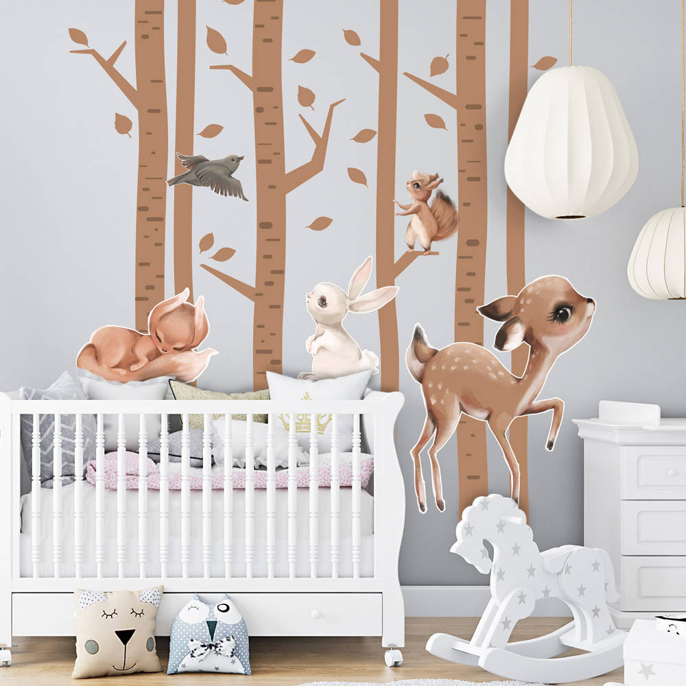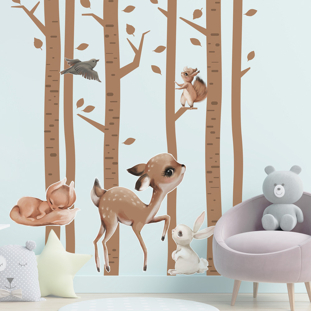 Dětská samolepící textilní fólie se zvířátky v lese změní dětský pokojíček v romantické místo.