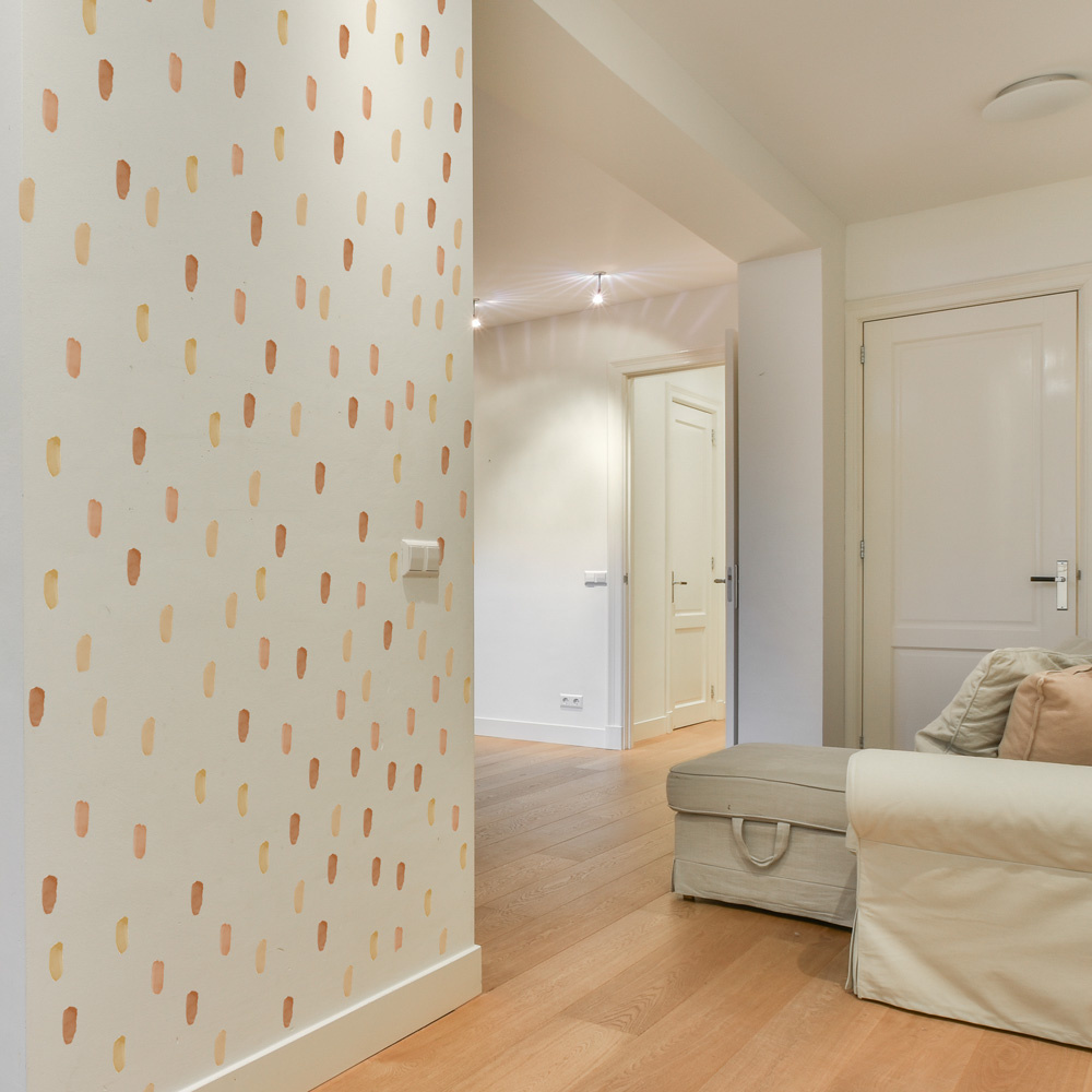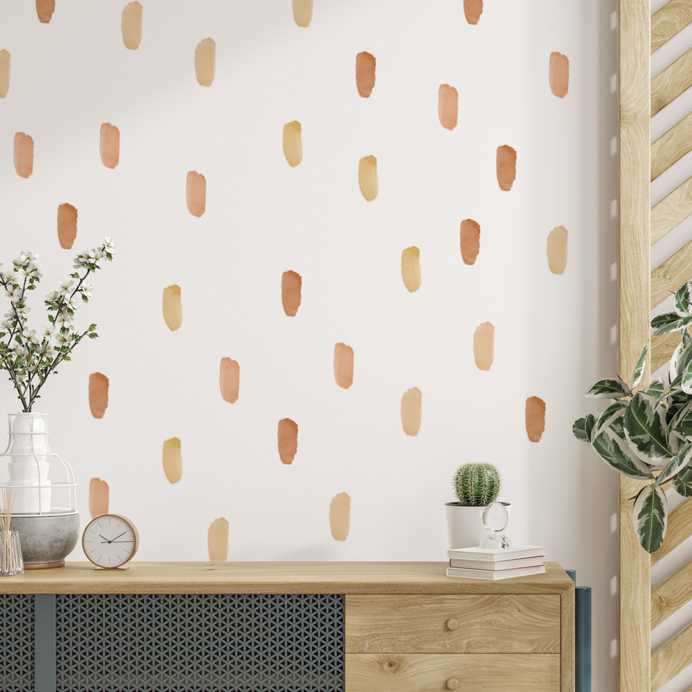 S nepravidelnými samolepícími čárkami v pastelově hnědých barvách, snadno a velmi rychle oživíte interiér.
