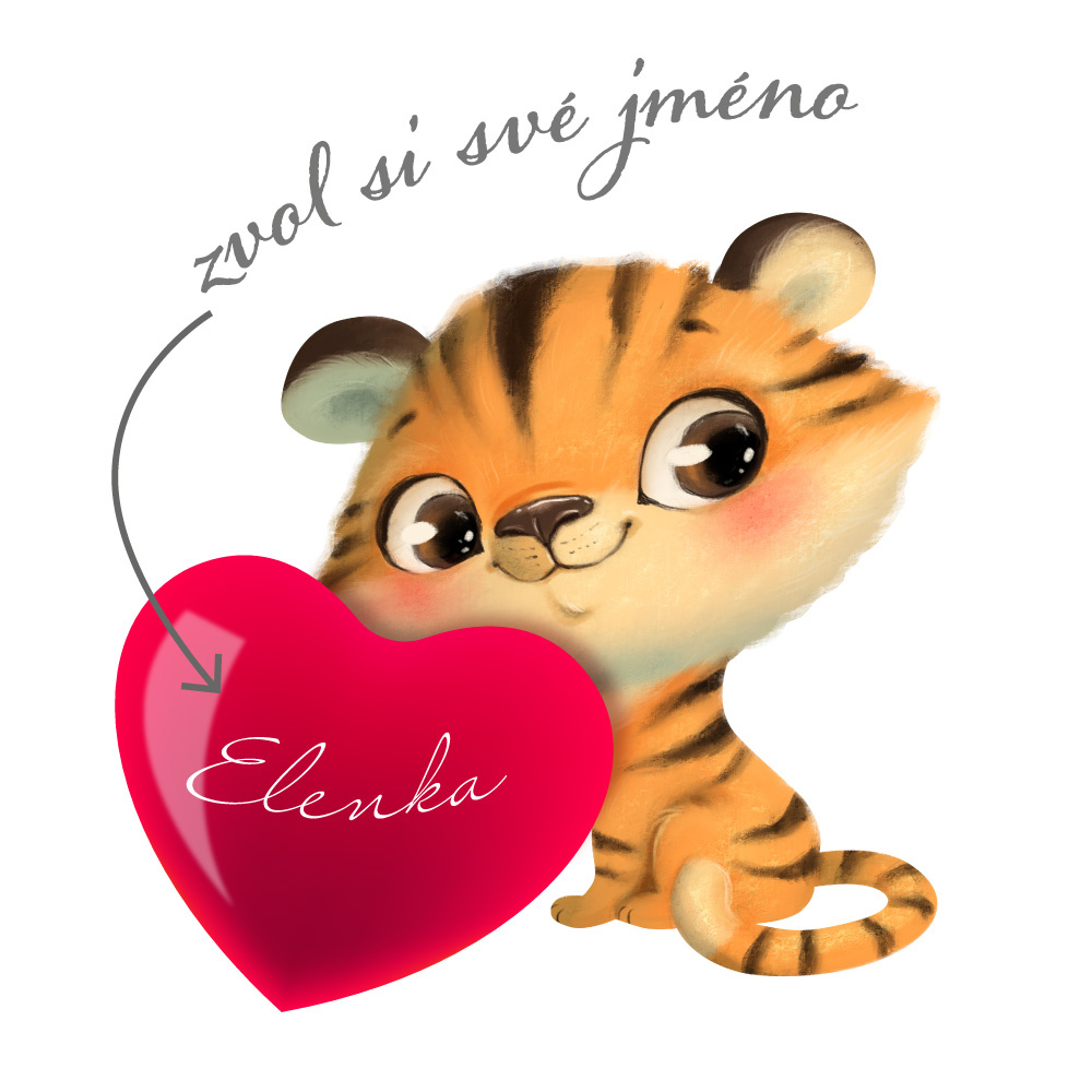 1 ks - tygřík se srdíčkem a jménem 72×71cm