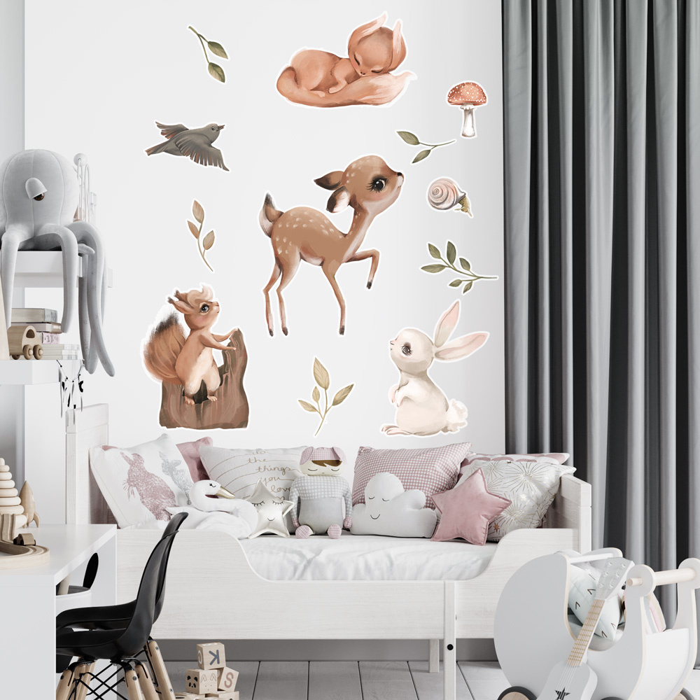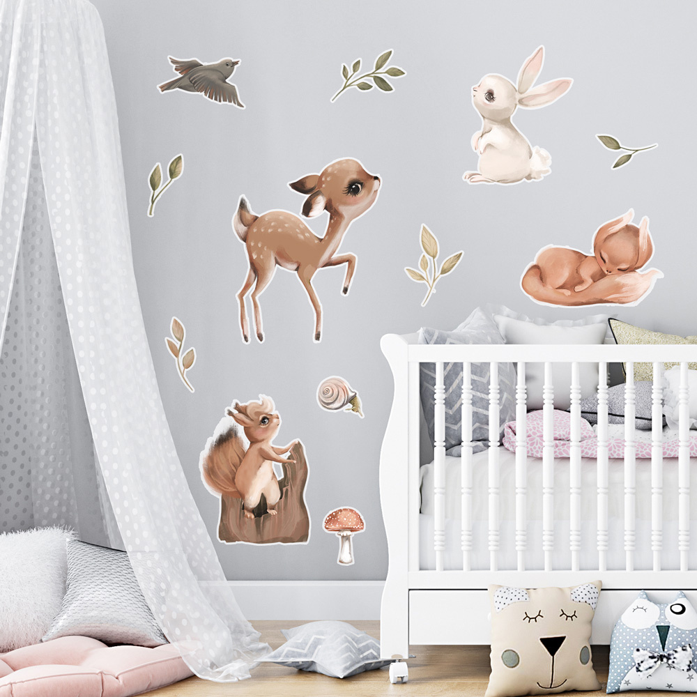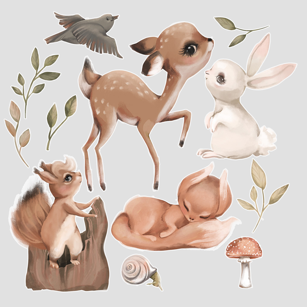Krásná kolekce malovaných zvířátek ze samolepící textilní fólie, vytvoří pohádkovou atmosféru za pár minut.