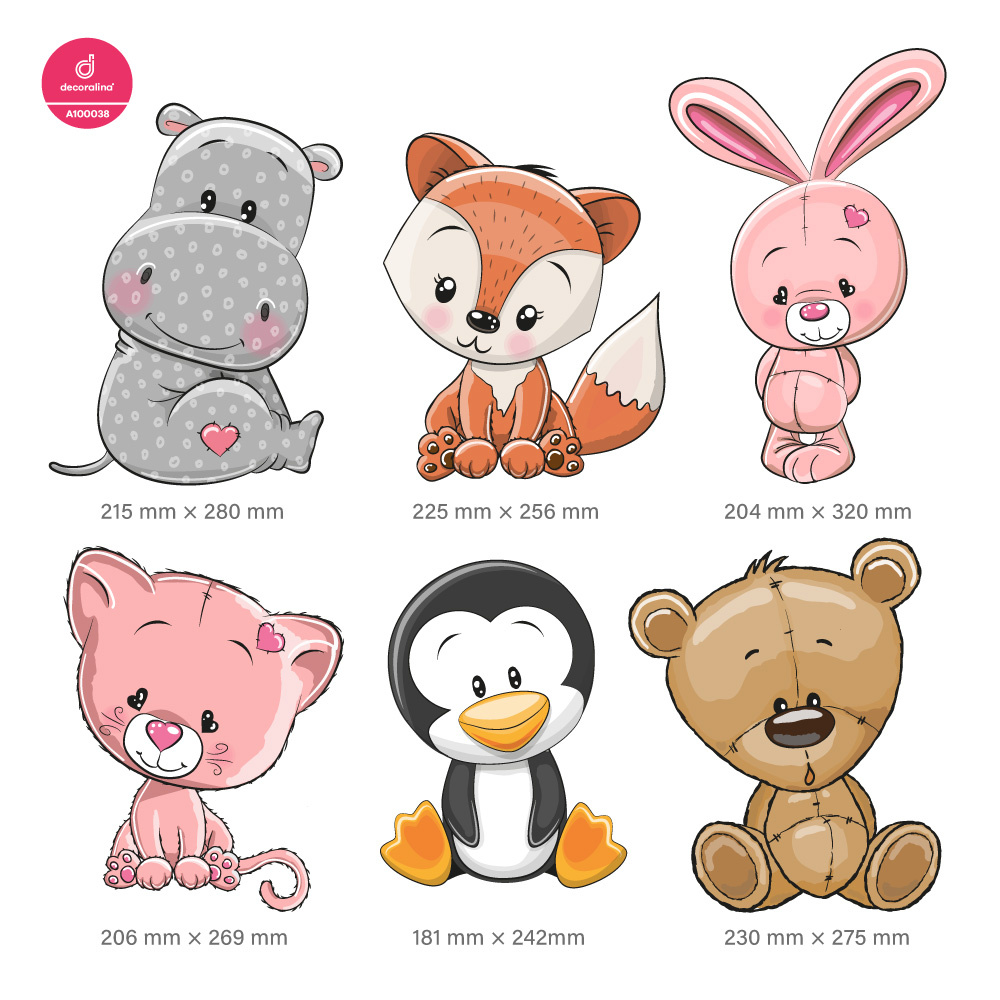 Nádherná kolekce zvířátek ze samolepící textilní fólie, vhodná pro dokonalý dětský pokoj. Snadno a rychle vytvoříte krásnou dekoraci třeba nad dětskou postýlku, nebo kdekoli v dětském pokoji.